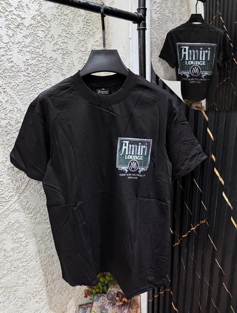 Channel the exclusive vibes of Hollywood nightlife with this premium graphic tee. Featuring the sophisticated “Amiri Lounge” branding, this shirt brings a touch of LA luxury to your everyday style. With a discreet logo on the chest and a bold, statement print on the back, it perfectly balances subtlety with high-end streetwear flair.