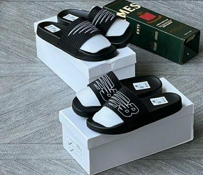 Upgrade your downtime with these essential slides. Featuring a bold, oversized “NB” logo across the strap, these sandals combine athletic heritage with modern street style. The sleek black design is highlighted by a unique mesh-textured strap and crisp white branding, making them a standout choice for the pool, the beach, or just relaxing at home. Slip them on and enjoy effortless cool.