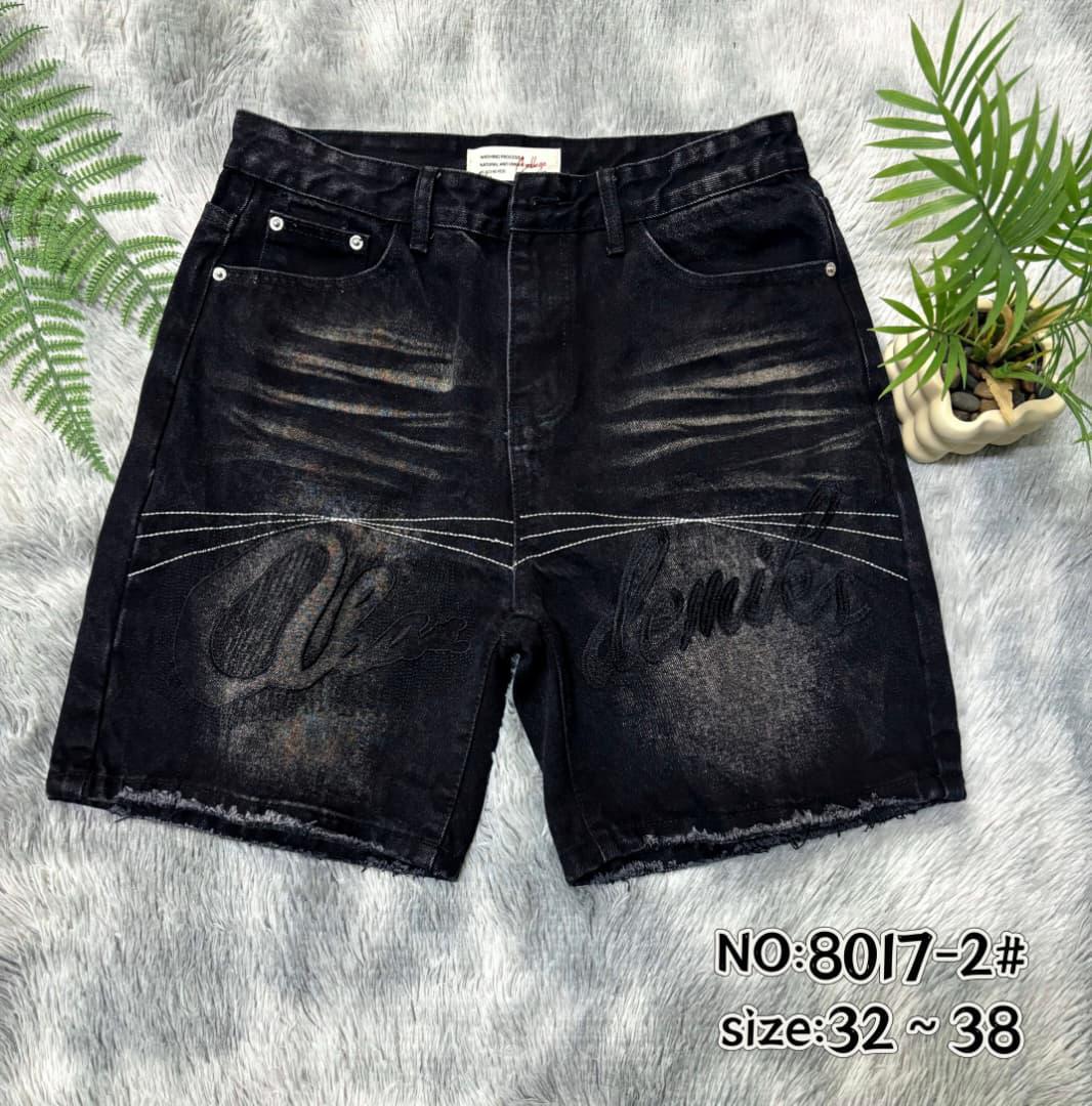 Keep your streetwear rotation fresh with these detailed black denim shorts. Defined by their “stealth” aesthetic, they feature large, tonal script embroidery across the thighs that offers a subtle, high-end branding effect. The look is elevated by bold white contrast stitching lines that arc across the front, cutting through the design for a modern, deconstructed vibe. Finished with a heavy vintage wash and frayed hems, these shorts are effortless cool.